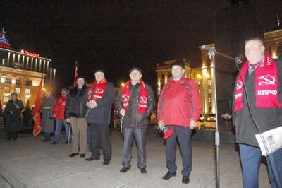 На площади имени В.И. Ленина у памятника вождю трудящихся всех стран состоялся митинг, который открыл второй секретарь обкома КПРФ, руководитель фракции КПРФ в областной Думе А.И. Рогатнев.