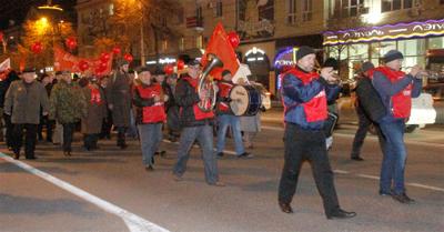 Затем организаторы мероприятия пригласили воронежцев к памятнику Жертвам белого террора, где планировался концерт с участием агитбригады «Солдаты Победы», стилизованной под красноармейцев военных лет, и праздничный фейерверк. Но стражи порядка запретили эти действия, ссылаясь на распоряжение руководства. К сожалению, вновь проявилась двойственность политики власти, которая вроде бы говорит об уважении к исторической памяти, и в то же время не может отрешиться от ведущего в тупик антикоммунизма и антисоветизма.
