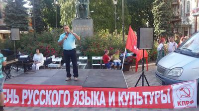 Всё это вспоминали на празднике, который состоялся в самом сердце Воронежа - у памятника великому земляку, поэту Ивану Саввичу Никитину. Музыкально-поэтический вечер открыл заслуженный деятель искусств России, художественный руководитель Театра юного зрителя, депутат-коммунист областной думы А.Н. Латушко, исполнивший замечательную, задушевную и глубоко патриотичную песню «Я люблю тебя, Россия». Второй секретарь обкома КПРФ А.И. Рогатнев прочитал стихотворение Анны Ахматовой «И мы сохраним тебя, русская речь», подчеркнув, что без русского языка немыслимо само существование России.