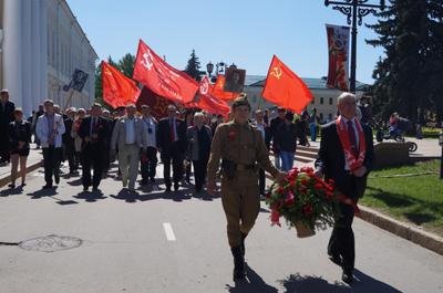 Колонна, возглавляемая Первым Секретарем Комитета нижегородского регионального отделения КПРФ, депутатом Государственной Думы Николаем Рябовым, руководителем фракции КПРФ в Законодательном Собрании Нижегородской области Владиславом Егоровым, депутатами Законодательного Собрания и Городской Думы Александром Чернигиным и Александром Перовым, а также членами НРО КПРФ и НРО ЛКСМ РФ и представителями общественных организаций, прошествовала на территорию нижегородского Кремля к Вечному огню, где после возложения цветов состоялся торжественный митинг. Собравшиеся говорили о великом подвиге советского народа в борьбе с фашистскими захватчиками.