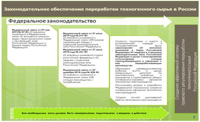 Вместе с тем специфика переработки техногенного сырья столь значительна и разнообразна, что требует соответствующего обустройства правового поля.
