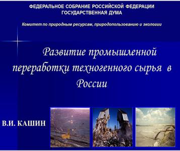 Доклад Заместителя Председателя ЦК КПРФ, Председателя Комитета ГД ФС РФ по природным ресурсам, природопользованию и экологии, академика РАН В.И.Кашина на круглом столе по проблеме использования техногенных месторождений.