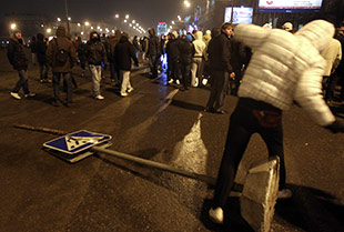Впервые милиция так уважительно вела себя с русскими молодыми людьми. Тысяча протестующих перекрыла Ленинградский проспект, скандируя "Москва для москвичей" и протестуя против криминального разгула