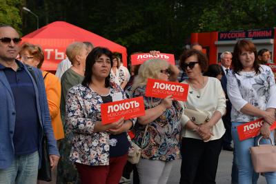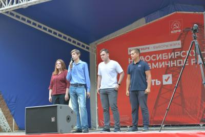 Со сцены также выступили молодежные движения, председатели ТСЖ и доверенные лица кандидата на пост мэра Анатолия Локтя. Так, автор и ведущая программы «Прецедент» Светлана Воронкова напомнила, что она не принадлежит ни к какой партии, но увидела еще 10 лет назад в кандидате от КПРФ, что тот порядочный, честный, способен принимать сложные решения и нести за них ответственность.