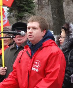 Затем ярко, эмоционально выступил 1-й секретарь КРО ЛКСМ РФ, член ЦК ЛКСМ РФ, 1-й секретарь Железнодорожного РК КПРФ А.И. Понарин.