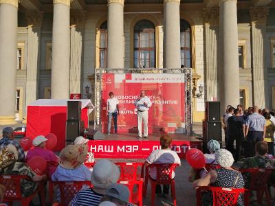Вечером 6 августа жители Калининского района собрались около Дома культуры им. М. Горького, чтобы оставить свой вопрос кандидату-коммунисту или подпись в поддержку его кандидатуры.