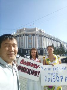 "Выборы - фикция!". В Улан-Удэ продолжаются пикеты против «выборов без выбора», в поддержку кандидата от КПРФ Вячеслава Мархаева.