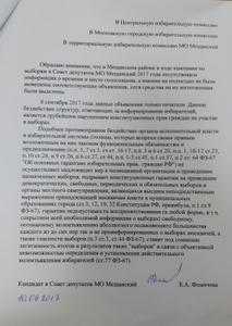 Приложение: копии указанных по тексту для примера жалоб о провале информирования избирателей в Мещанском и Савеловском районах Москвы на 3 л в 1 экз.
