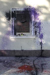 В ночь с 17 на 18 мая 2016 года на здании Крымского рескома КПРФ неизвестными лицами была осквернена мемориальная доска И.В.Сталину. Это уже не первая попытка акта вандализма по отношению к этому памятному знаку. Напомним, что точно такой же акт вандализма был совершён в ночь с 5 на 6 марта настоящего года.