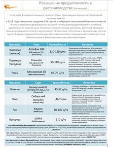 В 2018 году, по данным отделения сельскохозяйственных наук РАН, завершены работы по созданию 238 новых сортов и гибридов сельскохозяйственных культур. Вклад в эту работу внес каждый наш научно-исследовательский институт и центр, благодаря чему мы видим восхитительные результаты и по урожайности, и по отзывчивости, и по устойчивости.
