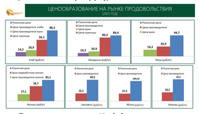 При цене реализации пшеницы 14 рублей за килограмм, мука, из нее сделанная, стоит уже почти 21 рубль за килограмм. Хлеб, испеченный из этой муки, реализуется хлебопеками по 56 рублей за килограмм, а на прилавке в магазине он стоит уже 88,3 рубля за килограмм! Получается, стоимость килограмма зерна в буханке хлеба умножили в шесть раз! Нигде в мире такого безобразия нет. А ведь из зерна производится 250 видов продовольствия. Надо выстраивать здоровую и справедливую систему ценообразования и взаимоотношений между производителями сельскохозяйственного сырья, его переработчиками и торговлей. По-другому мы не можем дальше в этом плане двигаться.