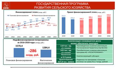 При этом нам говорят о том, что по другим отраслевым государственным программам на цели развития сельских территорий направляется ещё 214 миллиардов рублей в год. Но мы не видим эти средства, не можем проконтролировать эффективность их использования, оценить полученный результат. Три года Минфин обещает нам их окрасить в бюджете, но так ничего и не сделано.