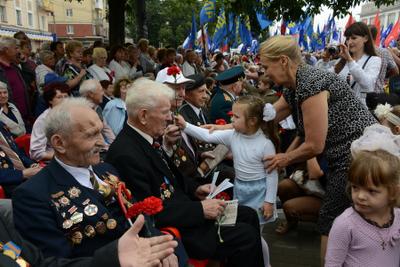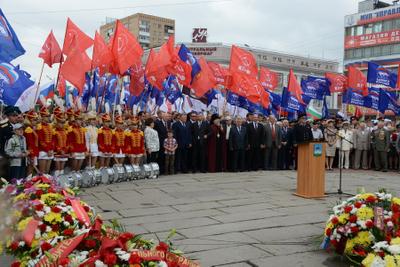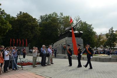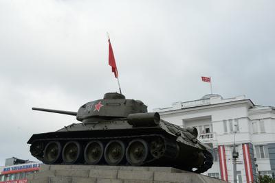 Вот и сегодня в сквер танкистов пришли тысячи орловчан, среди них было много коммунистов с красными знаменами с символикой КПРФ. На соседнем здании кто-то из горожан вывесил красное знамя, алый стяг развевался и над установленным на пьедестале Танке Т-34.