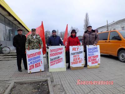 К участникам акции обратился депутат Ростовской-на-Дону городской Думы, секретарь Ростовского обкома КПРФ И.Н. Нестеренко. Страна находится в глубоком социально-экономическом кризисе, из которого нужно выходить, отметил оратор. Но вместо того, чтобы наводить порядок в стране, прилагать усилия к смене социально-экономического курса в интересах народа, власть продолжает политику угнетения трудящегося большинства. Власть ужесточает террор, что мы видим, в том числе, и по преследованию наших депутатов-коммунистов из Ульяновской области, и по судебному наскоку на Геннадия Андреевича Зюганова за то, что он справедливо назвал бизнес Дерипаски «аферой», а его передачу англосаксам «преступлением». Мы выходили не раз на митинги против незаконного судебного преследования нашего товарища Владимира Бессонова. Только Коммунистическая партия имеет четкую выверенную программу выхода из кризиса: это национализация природных ресурсов, монополия на производство и реализацию винно-водочной продукции, которые позволят наполнить бюджет и сделать его действительно бюджетом развития промышленности, образования, социальной сферы… «Наше дело правое – победа будет за нами!»