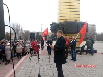 «Раньше мы пели, продолжал оратор, «Человек проходит, как хозяин необъятной Родины своей...». Теперь появились другие хозяева у нашей необъятной Родины, и их задача удержать наш народ (как они говорят, «население») дома, на привязи, у телевизоров, вместо того, чтобы публично отстаивать свои права»… «Пока мы не скажем: «Надоели!», никто не слезет с нашей шеи. «Никто не даст нам избавленья – ни Бог, ни царь и ни герой, добьемся мы освобожденья своею собственной рукой!». КПРФ объединяет всех – и дольщиков, и «дальнобойщиков», и «профсоюзников», ветеранов и молодежь. Пришло время объединяться и навести, наконец, порядок в стране!».