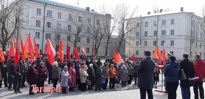 Акция протеста переместилась затем на площадь донской столицы, носящую имя В.И. Ленина. И тут, словно сама природа поддержала неравнодушных к судьбам страны и народа ростовчан. На сером, хмурившемся с утра небе вдруг засияло по-настоящему весеннее солнце. Оно будто бы приветствовало патриотический порыв трудящихся.