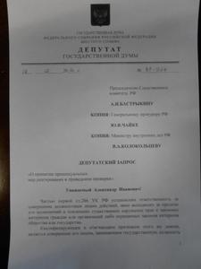 Депутатский запрос «О принятии процессуальных мер реагирования и проведения проверки»