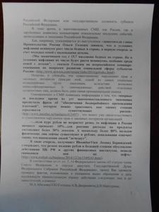 В свете резко ухудшающейся с каждым днём экономической ситуацией в стране депутаты Государственной думы от фракции КПРФ В.Ф. Рашкин, С.П. Обухов и О.Н. Алимова направили депутатский запрос председателю Следственного комитета Александру Бастрыкину с требованием провести проверку и дать процессуальную оценку действиям чиновников российского правительства, ответственным за обвал рубля. Копии депутатского запроса направлены генпрокурору РФ Ю.Я. Чайке и министру внутренних дел В.А. Колокольцееву.