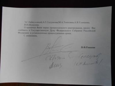 О принятых Вами мерах процессуального реагирования прошу Вас сообщить в Государственную Думу Федерального Собрания Российской Федерации в установленные процессуальные сроки.