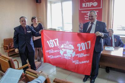 В завершении работы Пленума памятными знамёнами «100 лет Великой Октябрьской социалистической революции» наградили Читинское городское, Читинское, Нерчинское, Сретенское и Чернышевское местные отделения КПРФ.
