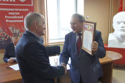 Депутат фракции КПРФ Сергей Сутурин вручил почётные грамоты и благодарственные письма от Законодательного собрания Забайкальского края за активную избирательную кампанию и в целом общественно-политическую деятельность депутатам Читинского районного Совета Нине Днепровской, Николаю Петрову, Максиму Шишкину, депутату Краснокаменского районного Совета Вячеславу Чащину.