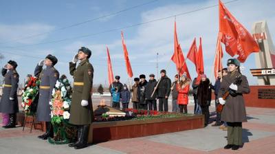 Забайкальские коммунисты возложили цветы к Вечному огню в честь Дня Советской Армии и Военно-морского Флота