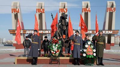 23 февраля коммунисты и комсомольцы Читы по традиции возложили цветы к Вечному огню на Мемориале боевой и трудовой славы забайкальцев в честь Дня Советской Армии и Военно-морского флота.