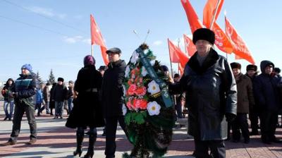 После завершения праздничного митинга все присутствующие могли отдать дань памяти павшим на полях сражений. Десятки читинцев двинулись к Вечному огню. Завершающей группой шли коммунисты и комсомольцы с красными флагами и копиями Знамени Победы в руках. По программе зазвучал Гимн России, совпавший с моментом, когда "красная" колона во главе с первым секретарем крайкома КПРФ Юрием Гайдуком и руководителем фракции КПРФ в Заксобрании края Николаем Мерзликиным подошла к огню. Коммунисты и комсомольцы во время его звучания и во время салюта отстояли у Вечного огня.