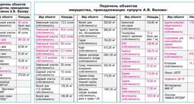 Учитывая забывчивость Алексея Васильевича, мы решили помочь ему преодолеть сей болезненный недуг и опубликовать последний (дополненный) вариант имущества семьи Валовых (см. таблицы внизу, малиновым цветом отмечены «забытые» объекты имущества). Теперь, если у Алексея Васильевича произойдёт очередной провал памяти при заполнении очередной декларации, то он всегда сможет воспользоваться нашей газетой.