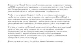 Публикуем Заявление Коммунистической партии Республики Южная Осетия.