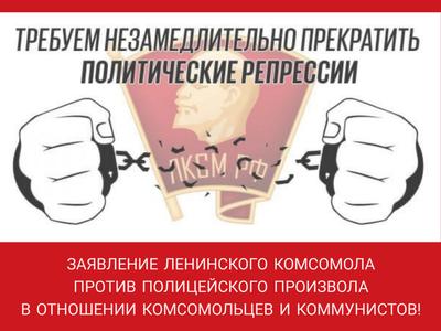 За свою активность и яркие акции комсомольцы давно стали объектами преследования буржуазной властью. Молодёжь всегда остро чувствует несправедливость и готова бороться против деспотизма. Начало года показывает, что действующая власть в нашей стране теряет контроль над происходящим, истерически пытаясь запугать и закрыть всех, кто вскрывает правду и имеет свои чёткие убеждения.