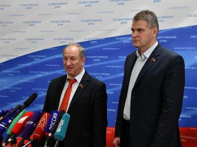 26 октября, предваряя пленарное заседание в Госдуме, перед журналистами выступили первый заместитель председателя Комитета ГД по делам национальностей В.Ф. Рашкин и член Комитета ГД по охране здоровья А.В. Куринный.