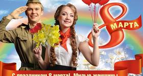 С праздником, цветущие наши дамы! Желаю вам счастья, любви, еще большей красоты. Пусть каждый день радует вас вниманием и заботой близких, жизнь наполняется новыми впечатлениями, только положительными эмоциями, яркими открытиями. Пусть наполнится ваш дом букетами цветов. Пусть не хватает полочек для подарков и вазочек для конфет. Большое спасибо за то, что вы есть!