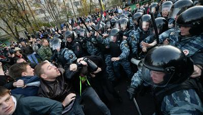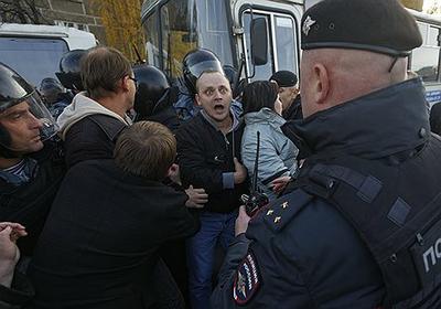 Денис Парфенов, первый секретарь Ленинского райкома КПРФ г.Москвы, кандидат в члены ЦК КПРФ На фото: события в Бирюлево ("Коммерсант")