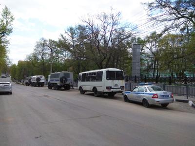 Кстати, о публике: лицезрели эту мерзость от силы человек 5-7, максимум 10. Да и кому было смотреть и слушать – профсоюзное шествие к тому времени закончилось, началась велогонка, движение транспорта по проспекту Ленина ещё не открылось, людей почти не было. Зато на Гоголевской стоял ПАЗ с ОМОНом и три автозака – на случай, если коммунисты всё же осмелятся нарушить запрет и придут митинговать в сквер Коммунаров. И пришли, но не туда, однако, это тема отдельного разговора.