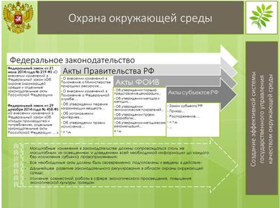 Эффективно дополняя друг друга, данные законодательные акты вывели правовое регулирование охраны окружающей среды на новый уровень.