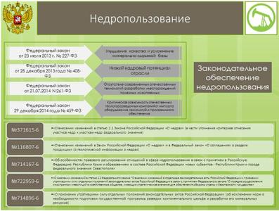 Далее хочу обратить внимание на законодательную составляющую недропользования в разрезе перспективной работы.