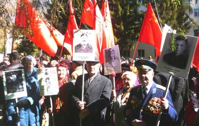 Коммунисты шли не только в торжественной процессии, но и в составе «бессмертного полка» с фотографиями своих отцов и матерей, принявших участие в Великой Отечественной войне. Затем они приняли участие в возложении гирлянд, цветов и венков к Вечному огню.