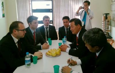 Накануне закрытия фестиваля прошла двусторонняя встреча между руководством Кимирсенского социалистического союза молодежи и Ленинского Комсомола России. В ходе товарищеской беседы стороны рассказали о работе с молодежью и ситуации стране, выразили уверенность в дальнейшем развитии тесных отношений между двумя организациями.