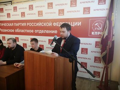 По второму выступил Евгений Морозов, который рассказал о необходимости проведения в этом году отчетно-выборной Конференции Рязанского областного отделения Ленинского коммунистического союза молодёжи Российской Федерации.