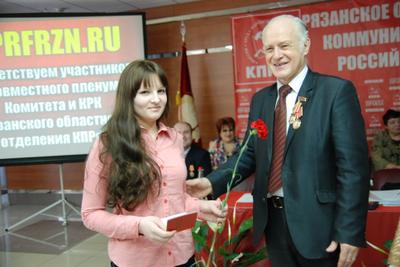 С основным докладом «Об усилении работы РК, ГК КПРФ среди молодежи Рязанской области» выступил секретарь обкома партии, депутат Рязанской городской Думы Д.С. Сидоров Показав с самого начала важную роль молодого поколения в выборе курса страны, он дал подробную характеристику различным категориям молодежи и факторам, влияющим на ее сознание;обозначил условия, в которых приходится действовать, и привел примеры работы райкомов и горкомов по молодежному вопросу; поставил задачи и предложил возможные варианты их решения.