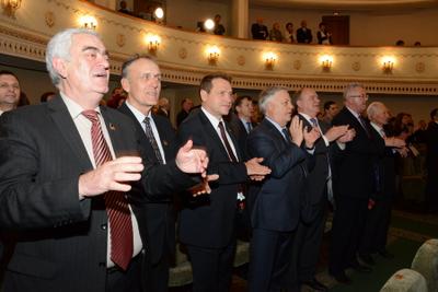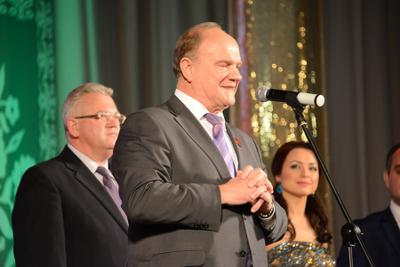 Затем перед участниками торжественного вечера выступил лидер КПРФ Г.А. Зюганов. Он отметил, что Белоруссия для него – это вторая Родина, здесь он начинал воинскую службу в рядах Советской армии. «Сегодня наши братские народы – русских, белорусов и украинцев пытаются столкнуть лбами на просторах Новороссии. Это делают те, кто вновь хочет водрузить коричневый флаг над Европой. Но такому не бывать!» - выразил уверенность лидер КПРФ.
