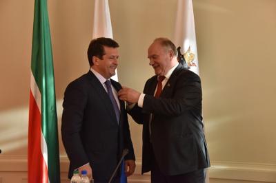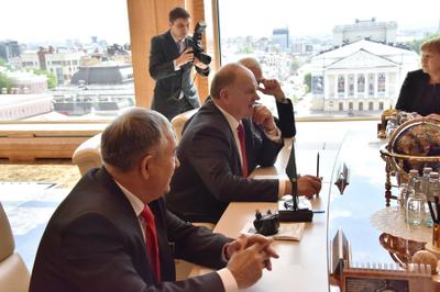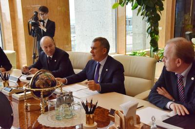 Затем состоялась встреча лидера КПРФ и Президента Татарстана Р.Н. Минниханова. В ходе беседы обсуждались вопросы развития экономики Республики, в частности, стратегический план «20-30», предусматривающий глубокие инфраструктурные преобразования. Г.А. Зюганов вручил Р.Н. Минниханову памятную медаль ЦК КПРФ «70 лет Победы». Во встрече также приняли участие депутаты-коммунисты Государственной Думы В.П. Пешков, А.П. Тарнаев и первый секретарь Татарстанского рескома КПРФ, руководитель фракции КПРФ в Госсовете Татарстана Х.Г. Миргалимов.
