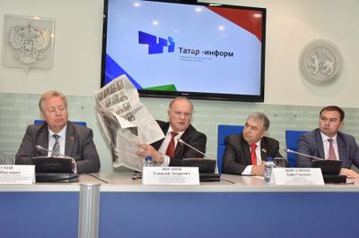 В завершение визита Г.А. Зюганова в Казань состоялась пресс-конференция в информационном агентстве «Татар-информ». В ней приняли участие депутаты-коммунисты Государственной Думы Ю.В. Афонин, С.П. Обухов, В.П. Пешков, А.А. Ющенко, первый секретарь Татарстанского рескома КПРФ Х.Г. Миргалимов.