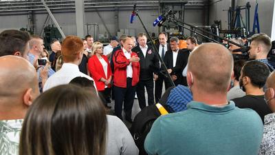 Завершился визит председателя ЦК КПРФ Г.А. Зюганова в города Московской области возложением цветов к памятнику В.И. Ленина и встречей с жителями в г. Фрязино, в ДК «Исток».