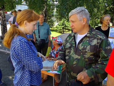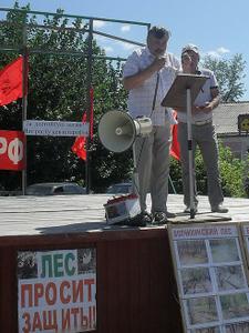 - Серия наших акций началась в субботу с пикета в 8:00 на одном из самых оживленных транспортных узлов района - поселке Урожайном. Отсюда традиционно рано утром садоводы и грибники отъезжают за город на автобусах. Продолжили в 10:00 около двух крупных продуктовых супермаркетов - этот пикет рассчитан на тех, кто отъезжает на садовые участки, в лес, на водоемы на своих автомобилях, - а сначала приезжает за покупками. Финалом стал митинг в 12:00 на пос. Новосиликатном тоже на площади вблизи рынка и множества магазинов - сюда традиционно в субботу съезжаются за покупками жители пригорода – поселков Лесного, Октябрьского, Куета, сел Новомихайловки, Власихи, Учхоза. Митинг, я считаю, прошел удачно, - местные жители откликнулись на инициативу коммунистов, охотно подходили к микрофону и просили слова. Им было, что сказать и о самом лесе и о ситуации в находящихся или прилежащих к лесу поселках в целом.