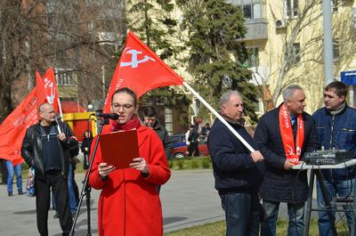 Акцию протеста открыли и вели секретари Ростовского-на-Дону ГК КПРФ Ирина Кислицына и Дмитрий Животов.
