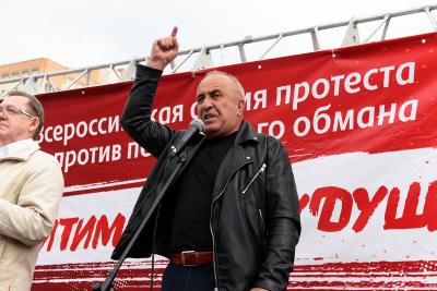 — Я приветствую всех, кто пришел выразить свой протест против этой антинародной, антисоциальной так называемой «реформы». Это значит, что вам небезразлично наше общее будущее. На сегодняшний день прошли митинги и акции протеста в более чем 100 городах России, в которых приняло участие более 100 тысяч человек. У нас с вами нет другого оружия, кроме солидарности, поэтому сегодня на площади присутствуют представители различных политических партий. Ведь правительство Российской федерации нанесло несколько ударов по своей стране, своему народу, своей экономике – рост цен на бензин, повышение НДС, повышение пенсионного возраста.
