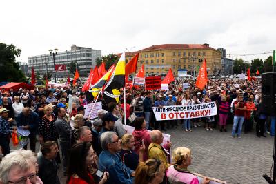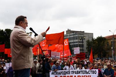 Новосибирск присоединился к Всероссийской акции протеста, объявленной КПРФ 28 июля. Выступавшие выражали решительный протест против повышения пенсионного возраста, неоднократно звучало требование отставки правительства Медведева.