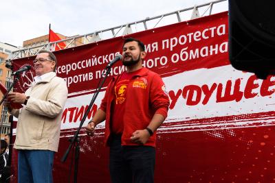 На митинге смогли выступить представители тех организаций, которые подписали соглашение о создании коалиции противодействия повышению пенсионного возраста. Так, заместитель председателя комитета «Пенсионеры – за достойную жизнь» Юрий Зимин напомнил о том, насколько силен разрыв между доходами руководства Пенсионного фонда и размером пенсий: